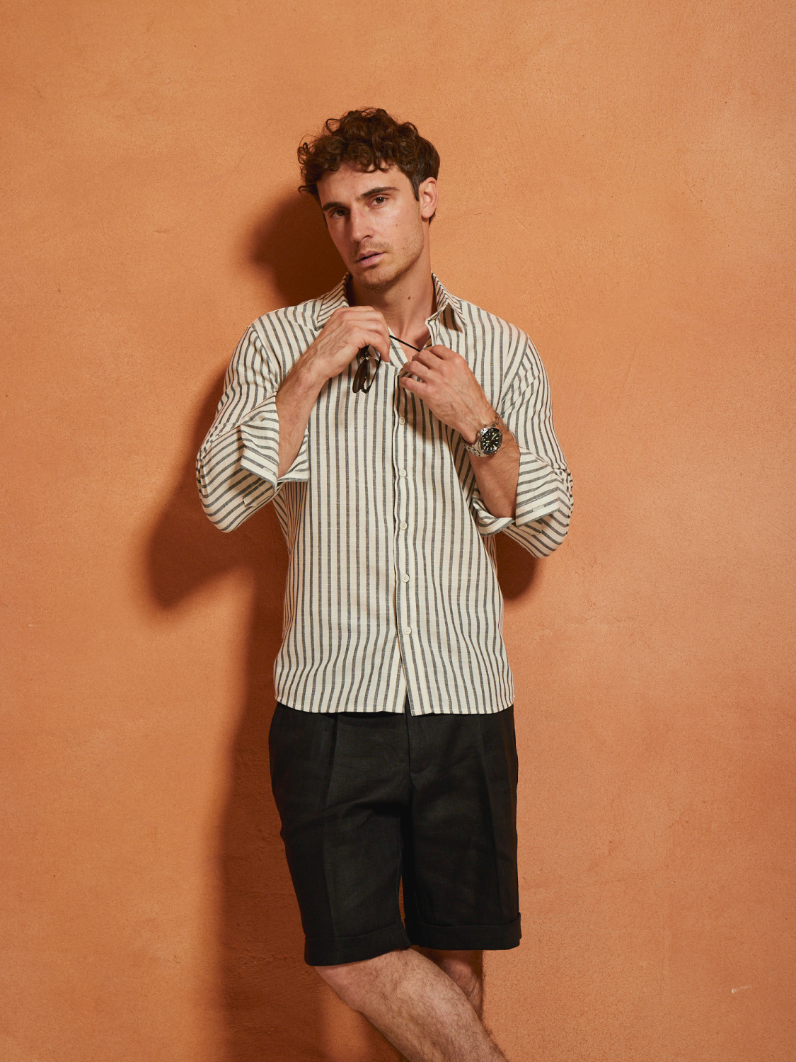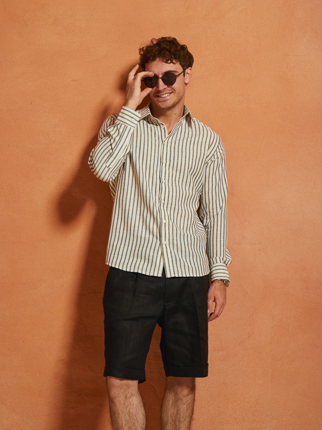Linen shorts in a classic style, with pintucks and cuffs. They go harmoniously with loafers and classic sneakers or open shoes. Made from natural linen