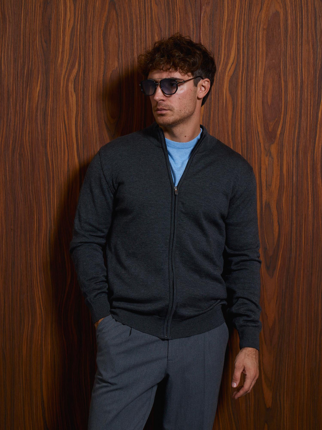The zip-up jumper is finished in a discreet and elegant brown color, making it ideal for everyday style and informal business meetings. The product has a laconic design with a high collar, which provides additional protection against wind and coolness. A full-length zipper adds practicality, allowing the jacket to be put on and taken off easily, as well as adjust comfort depending on the weather.