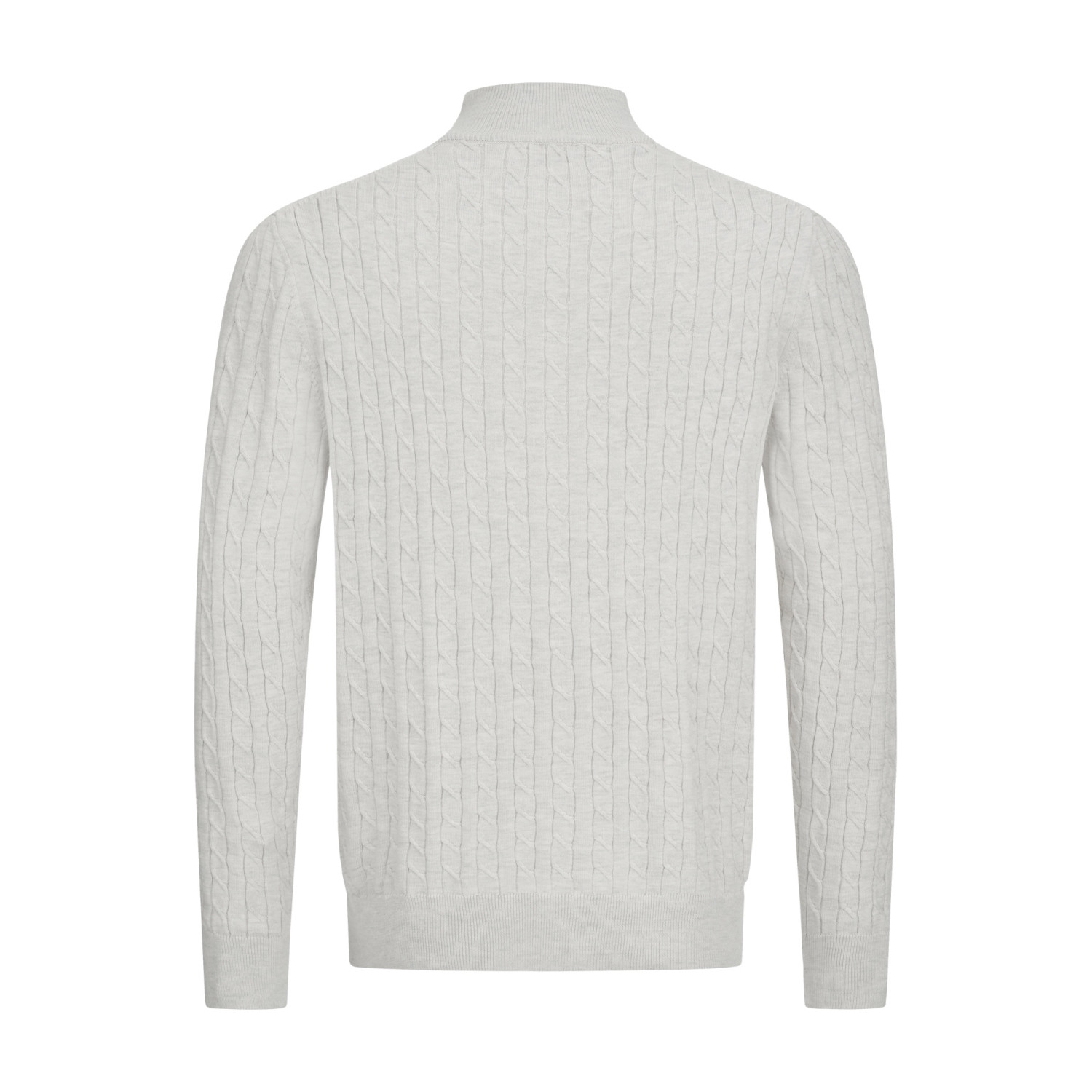 LIGHT GREY CABLE-KNIT FULL-ZIP CARDIGAN