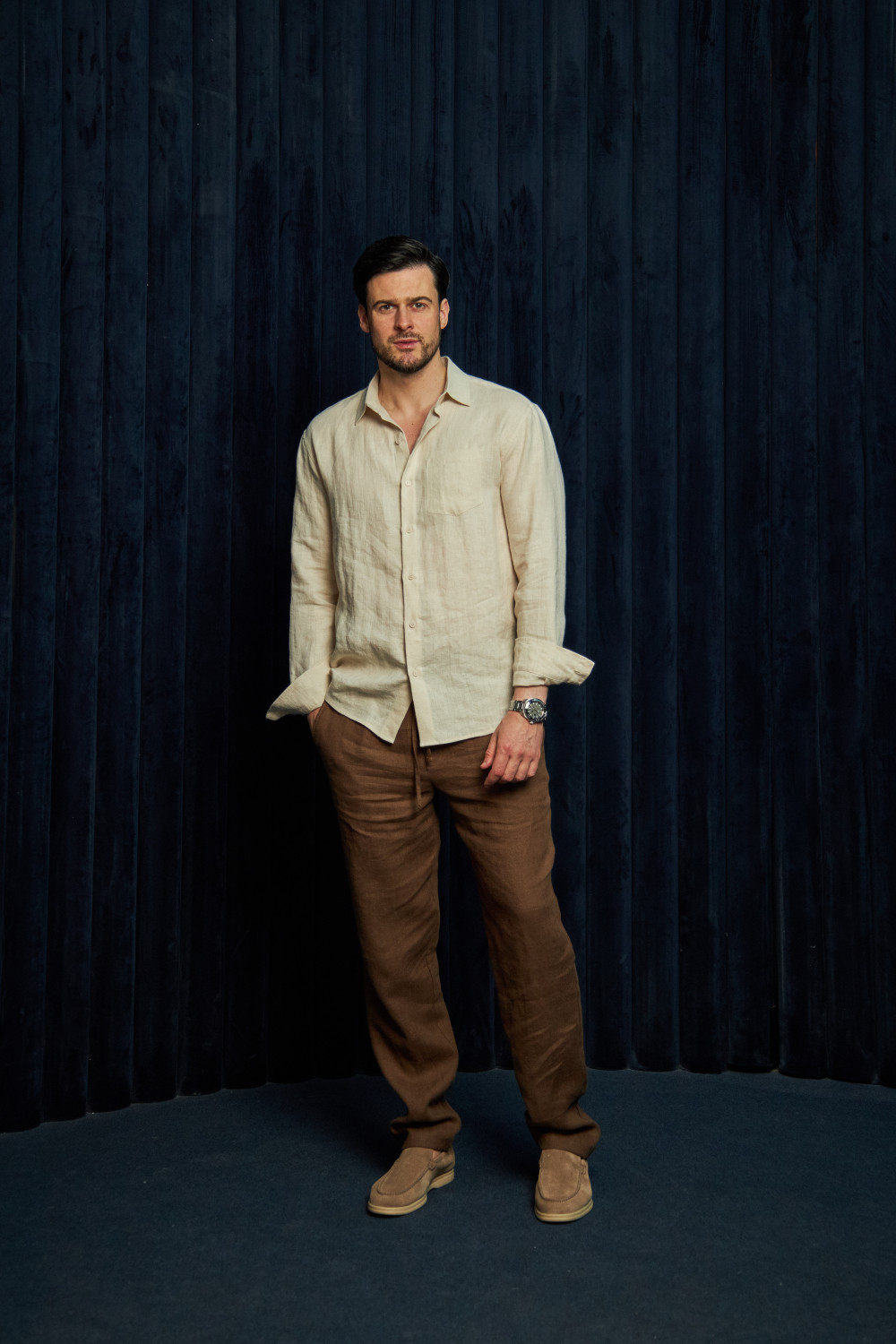 Елегантний бежевий колір лляної сорочки доповнить ваш образ, придаючи йому легкісті