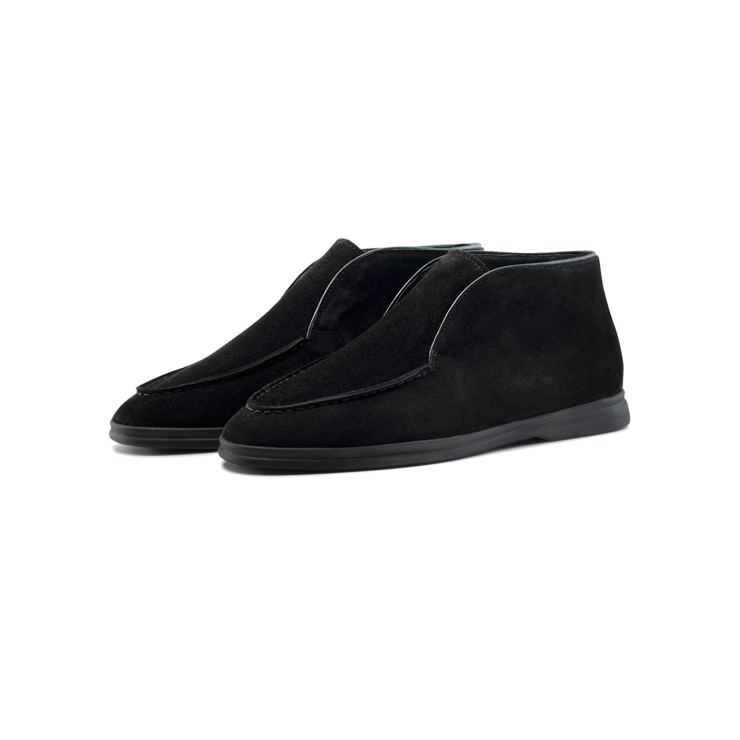 Елегантні замшеві черевики — втілення сучасної вишуканості. Виготовлені з натуральної м’якої замші преміум якості, ці черевики поєднують комфорт і стиль. Лаконічний силует, витончені лінії та глибокий чорний колір створюють універсальний образ, що доповнить як повсякденний, так і діловий стиль. Легка підошва забезпечує зручність протягом усього дня, а бездоганне оздоблення підкреслює ваш витончений смак.