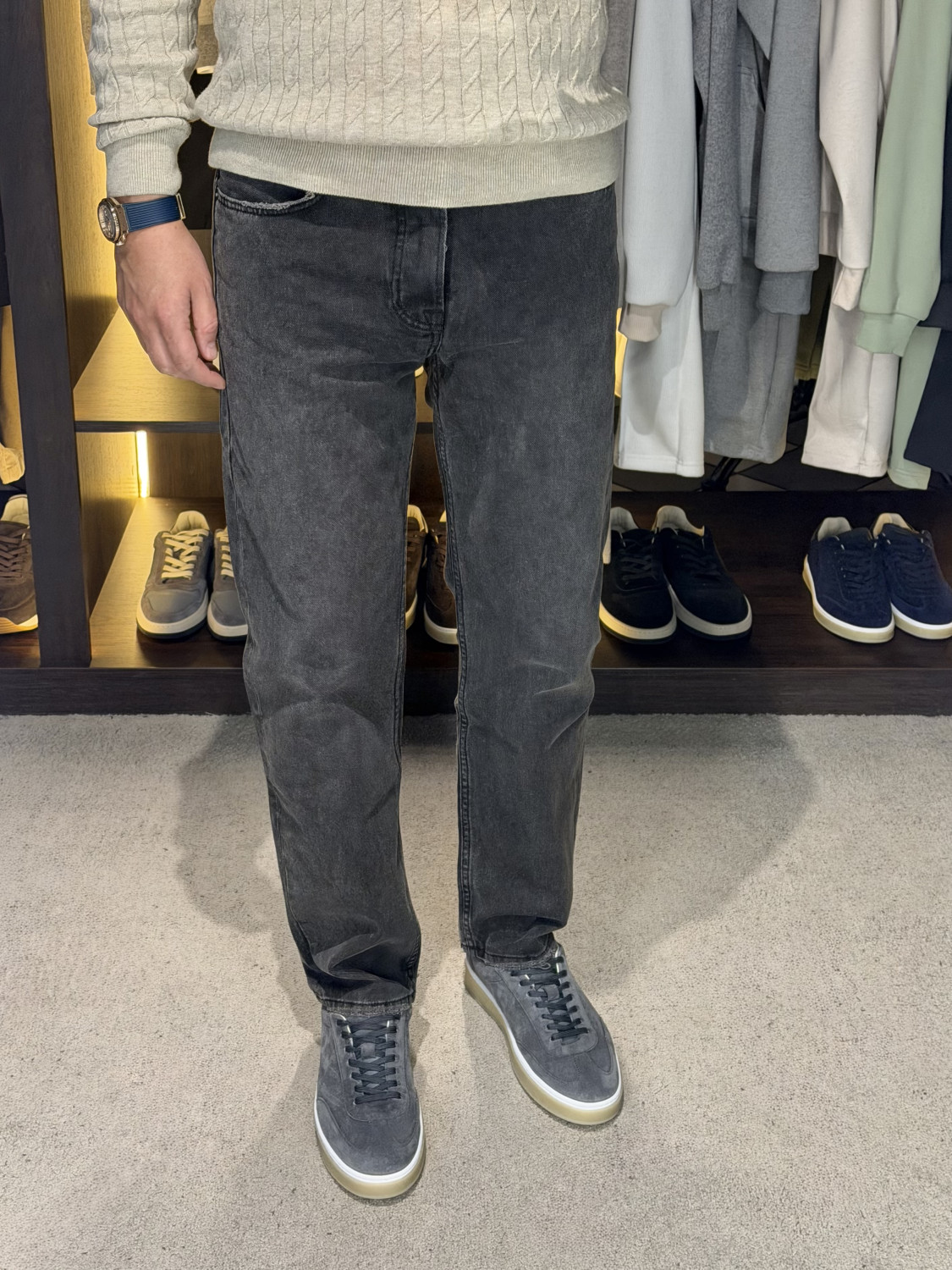 Universal dark grey jeans with a subtle vintage wash — a staple of the modern men’s wardrobe. The clean, minimalist design without unnecessary details makes this model easy to style for both casual and more refined looks.
