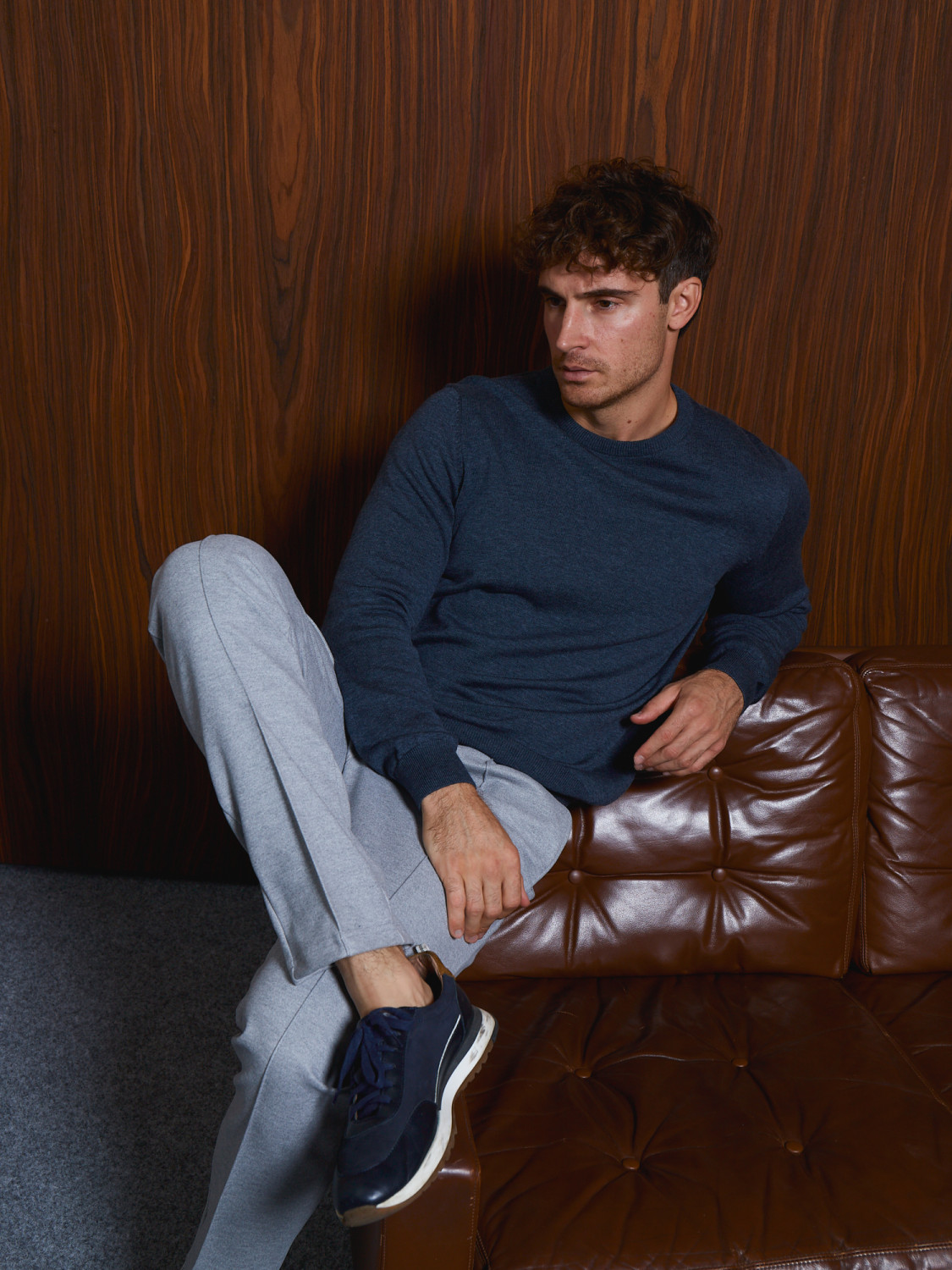 A classic or casual look made from natural fabrics is enhanced by a modern trouser style. The soft shape of the loose, tapered cut combines with a practical drawstring at the waist and steel-tipped ties for a harmoniously versatile look.